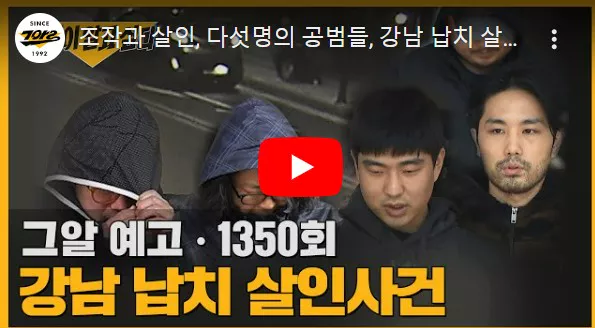오늘 방송되는 <그것이 알고 싶다> 1350회에서는 강남 납치 살인사건을 다룬 '조작과 살인-다섯 명의 공범들'편을 방송합니다. 강남 한복판에서 벌어진 충격적인 납치 살인 사건인데요, 복잡하게 얽힌 사건의 진실을 추적합니다.