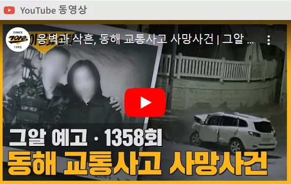 이번 주 <그것이 알고 싶다> 1358회 ' 옹벽과 삭흔 - 동해 교통사고 사망 사건' 편에서는 지난 3월에 강원도 동해에서 발생한 교통사고 사망사건을 다룹니다. 남편이 아내를 살해하고 교통사고로 위장한 것이 아니냐는 의혹이 있는 사건입니다.