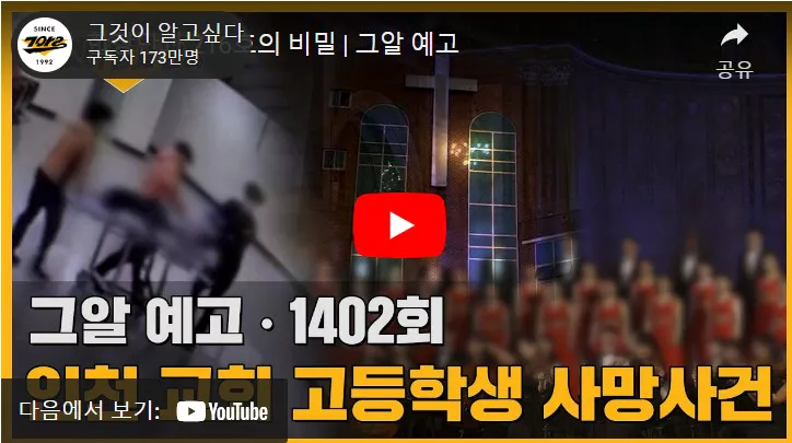 SBS의 인기 탐사 프로그램 ‘그것이 알고 싶다’는 이번 주에 충격적인 사건을 다룹니다. 인천의 한 교회에서 의식을 잃은 채 발견된 여고생과 관련된 미스터리한 사건을 파헤칩니다. 이 사건은 단순한 사고가 아닌, 더 깊은 비밀을 감추고 있는 것으로 보입니다.