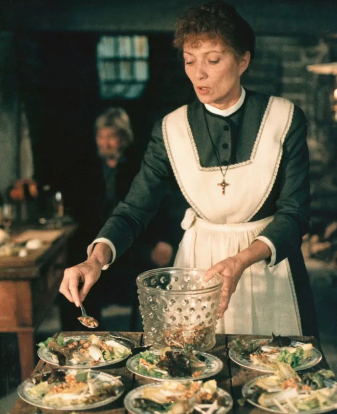어느 폭풍우가 몰아치는 날 밤 이들에게 바베트라는 여성이 찾아옵니다. 바베트는 프랑스혁명에서 가족을 잃고 간신히 도망쳐 나온 고급 식당의 요리사였죠. 아무 조건 없이 가정부로 일하게 해 달라는 간청에 두 자매는 바베트와 함께 지내게 됩니다.
