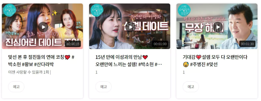 이젠 사랑할 수 있을까 주병진 박소현 리얼 맞선 예능 예고보기 결정사