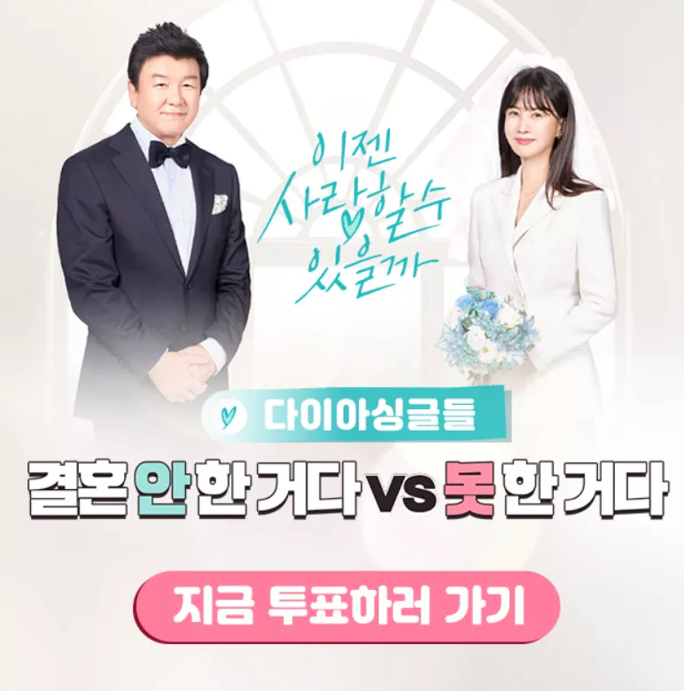현재 티비엔 ‘이젠 사랑할 수 있을까’ 홈페이지에서는 재미있는 투표가 이루어지고 있는데요, 과연 그들은 결환을 안 한 걸까요, 못한 걸까요? 한번 참여해 보세요. 추첨을 통해 백화점 상품권과 치킨 세트 등의 선물도 증정한다고 하네요.